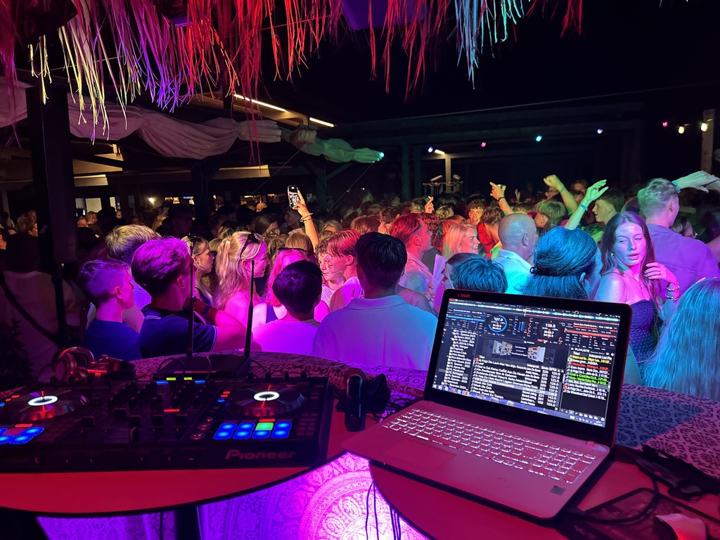 Mein DJ Equipment (Kontroller & Laptop) sowie meine sehr breite Musikauswahl sind immer dabei.